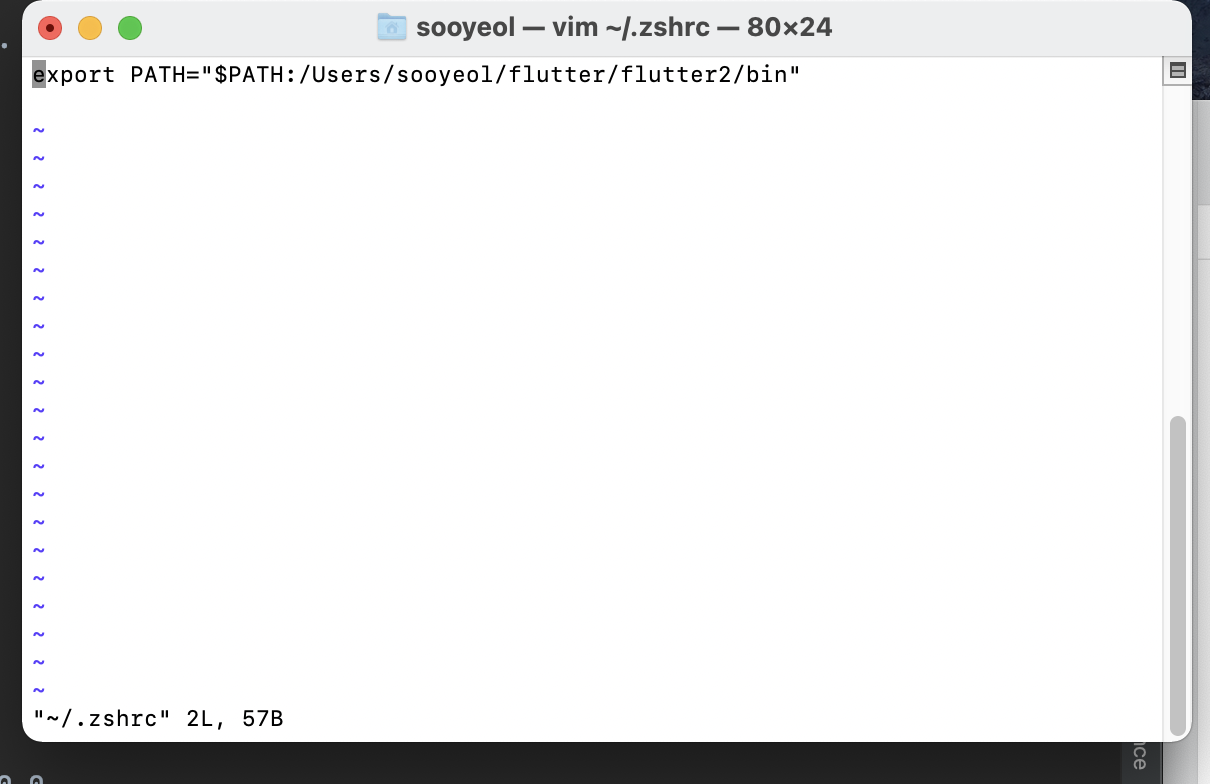 export PATH="$PATH:/{폴더경로}/flutter/bin"
