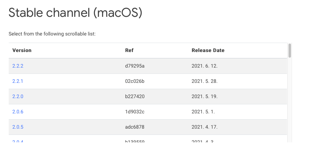 회사에서 사용하는 앱에 플러터 버전이 2.0.2라는 것을 들었고,